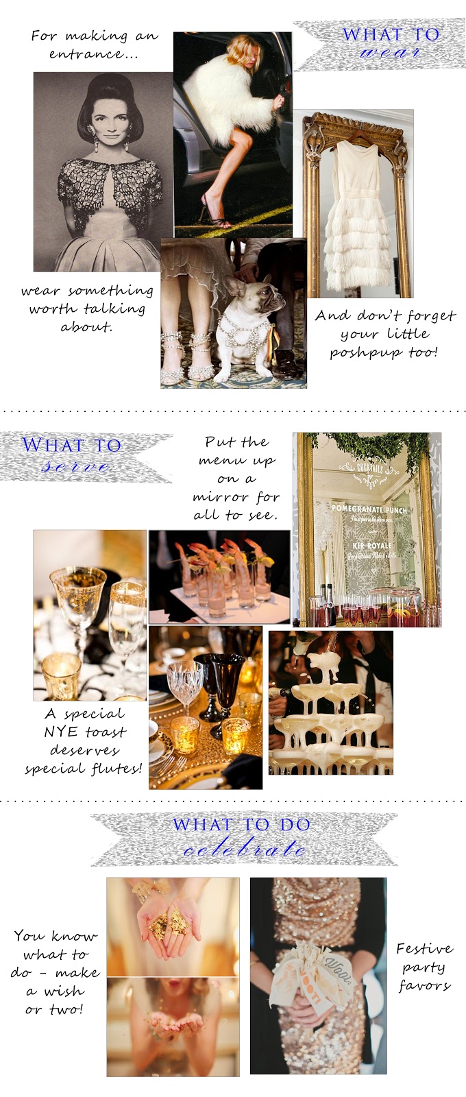 1. Find something fun to wear: Whether you want to make a Kate Moss entrance with furs and feathers or take a regal and elegant approach like dear Lee Radziwill, set the tone for the soiree with equally festive attire. New Year's does come but once a year, after all!
