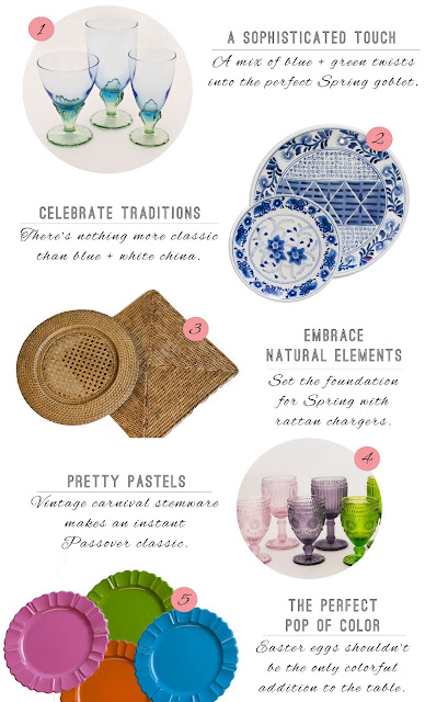 Even though it is freezing outside, we're still in the mood for Spring. We've picked five favorites for the perfect P.O.S.H. settings, just in time for Passover and Easter.