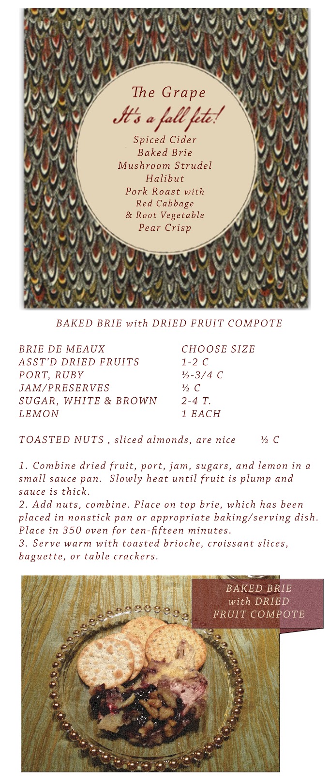 Today we continue where we left off Thursday with more delicious goodness from Executive Chef Brian C. Luscher of The Grape. (Click here for yesterdays recipes and an overview of this Dallas favorite.) Brain is bringing the holidays home with an amazing mushroom strudel and pork roast that will have everyone coming back to the kitchen for seconds. We tried out the baked brie and can't wait to cook up the whole menu for family and friends. (P.S. For those of you whose idea of cooking involves heating up leftovers in the microwave, The Grape also caters!) Brian has been kind enough to share all of the recipes on this menu. If you would like a copy, please email showroom@poshcouturerentals.com (Take our word: You'll definitely want to!). This menu is perfect for a fall fete or social gathering. With Brian sharing recipes and POSH providing festive tabletop, you'll have the holidays covered!
