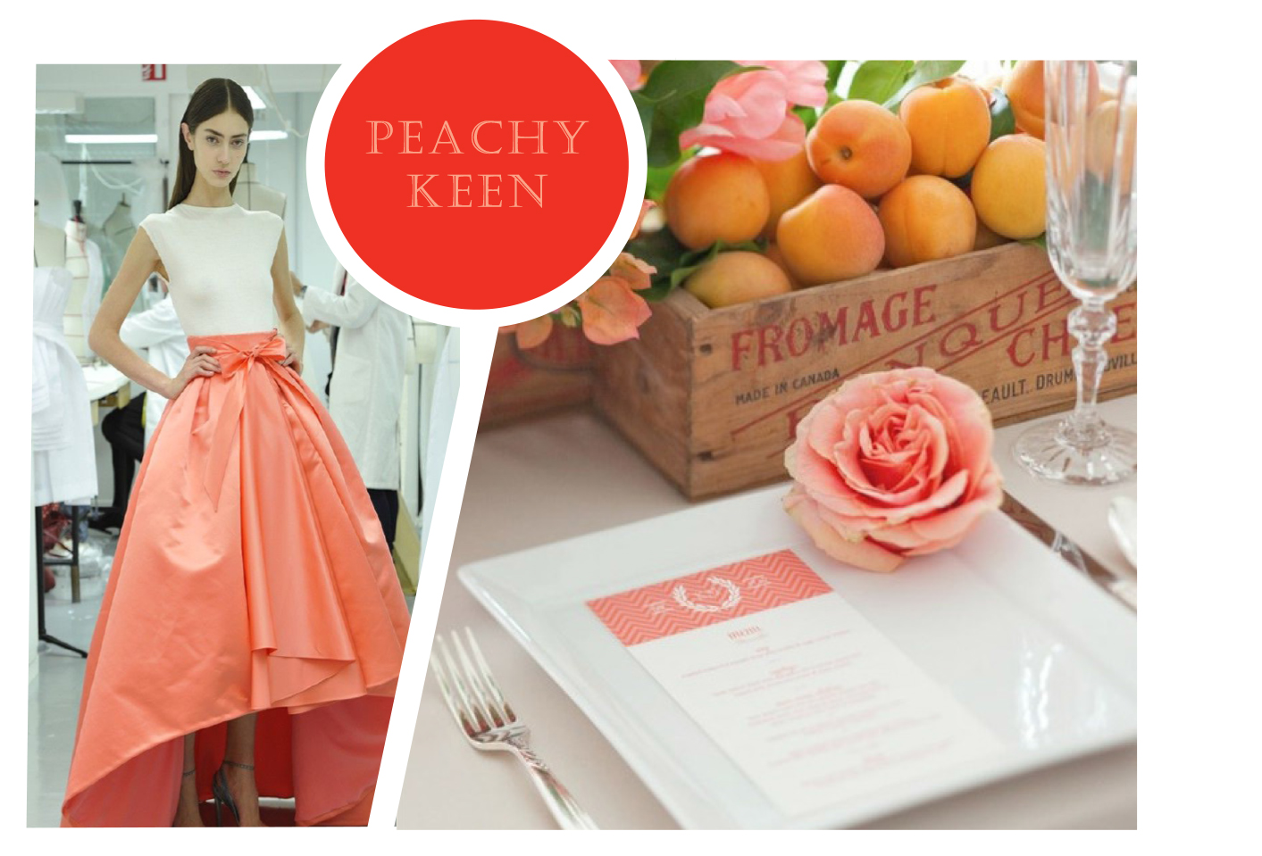 We love a great peachy hue. It basks in Summer tablescapes with hints of orange and red or sets off a sweet yet simple place setting. Come Fall, it strikes a chord with deep browns and greens. Simply put, it's the under-appreciated neutral of the color wheel. So, if you are already thinking about peach when it comes to event decor or your fashionable attire, go for it. Peachy keen, indeed.