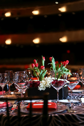 We'd pair the collection with rattan chargers and dark linens for an exotic theme and Barcelona Silver and Gold China for a more regal look. If you don't have the Zebra china collection, use a pattern linen and keep the tabletop simple with deep colors for a dramatic look. The Dallas Opera accomplished this perfectly with the 2012 la Traviata Onstage Dinner.