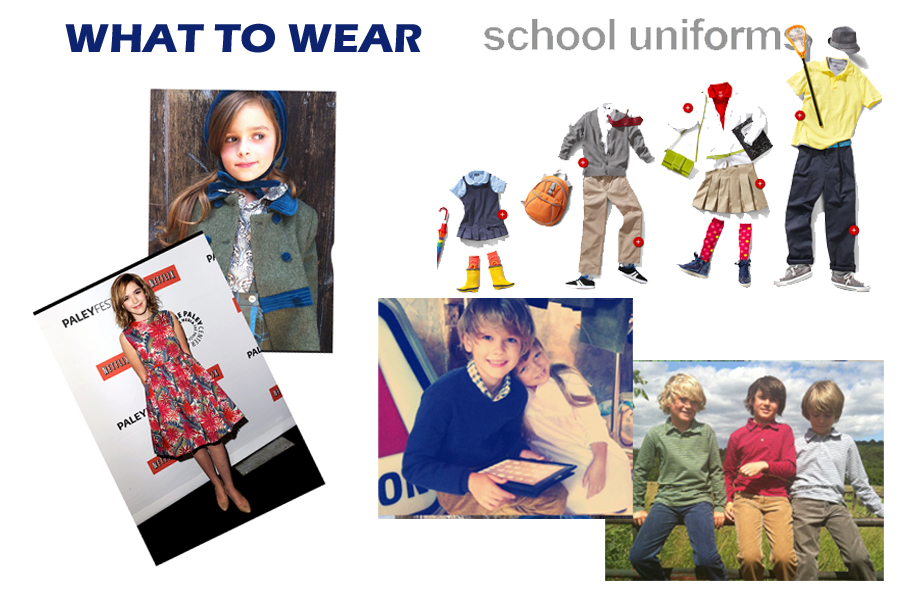 | (From left): Kiernan Shipka of Mad Men fame, wearing Oscar de la Renta childrens (image via George&Ruby), Oscar de la Renta Childrens Fall 2012, Target school uniforms. |