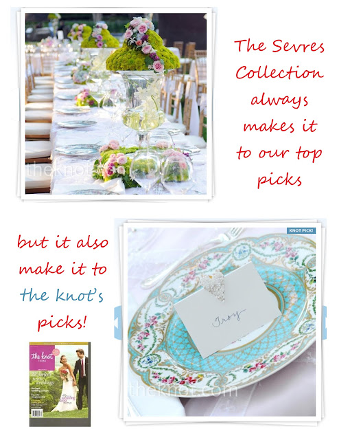 Whether it's a garden party of a dinner party, the Sevres Collection is a tried-and-true selection sure to wow you guests. But don't take our word for it, take The Knot's. Our favorite china was selected as a Top Pick for the Spring 2012 and Fall 2012 issues.