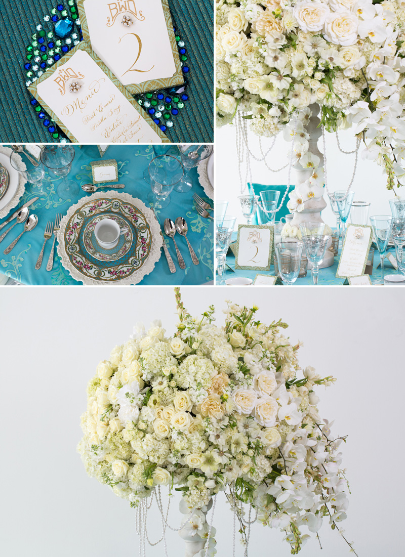 We love a blue wedding. We've seen classic themes that include Tiffany blue and nautical navy as well as seasonal themes that bring icy blue for a winter wonderland. What we don't get to see very often is aqua blue, so we were thrilled when Jordan Payne used this festive hue for a tablescape perfect for spring brides. Who wouldn't fall head over heels for this tabletop?