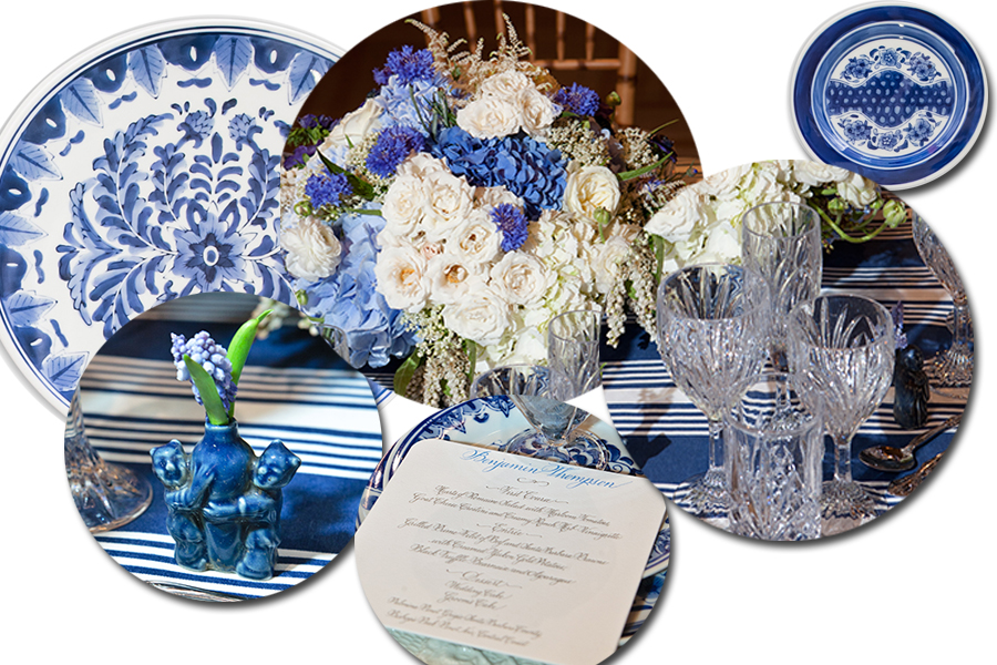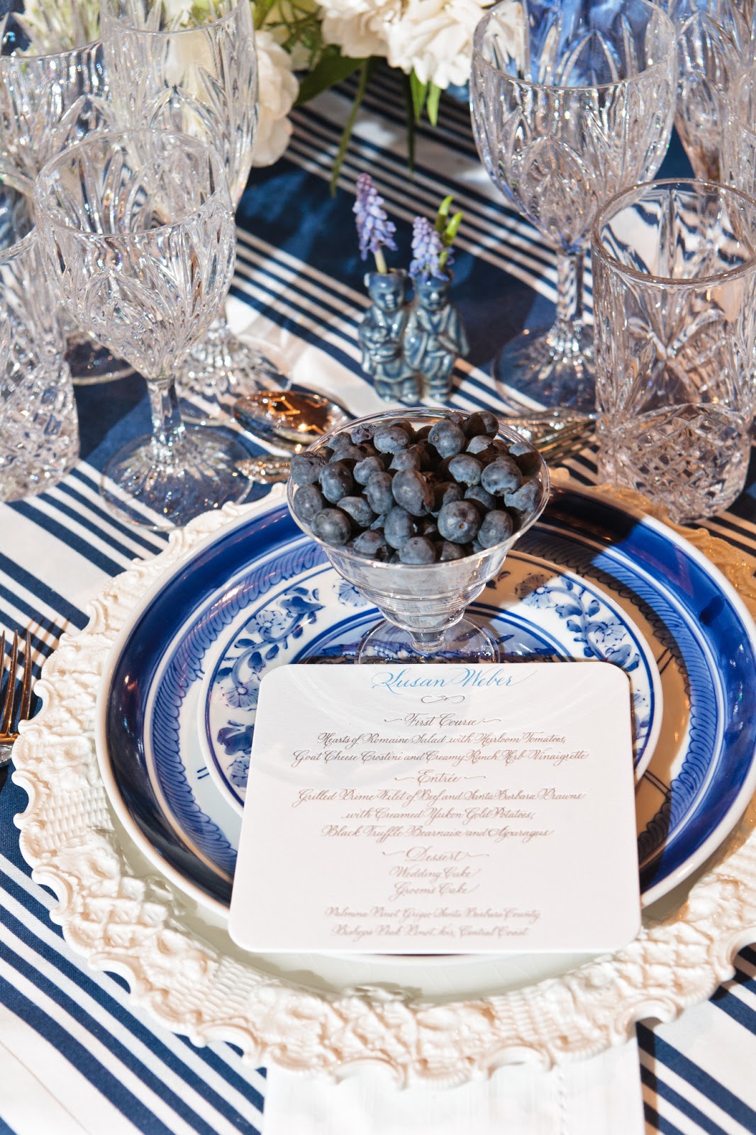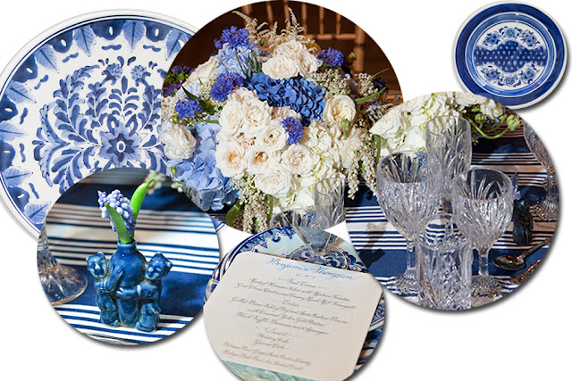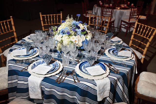 Blue and White china calls to mind the tablescapes of the most iconic of tastemakers, from the timeless Jackie O to the more modern Tory Burch. When we see a place setting like this we think of memories being made around the table by friends and family, long weekends on the East Coast, and Southern pomp and circumstance. There is definitely no reason to be blue when looking at this gorgeous foundation. We've had our mind on this beauty since last Fall, when Mathes and Co. designed it for the NACE Color Me a Cure Tablescape Competition. It is the perfect toast to the longer days of Spring and Summer. This fantastic celebration of classic designs (blue + white china, striped linens) calls for guests to linger long after the food has been served. We can just imagine the conversations that would fill the air.