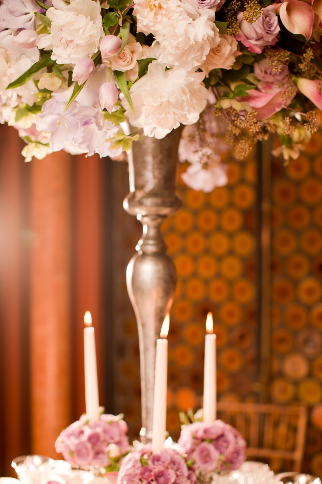 Featured in Top Design for Modern Luxury Brides, the always on point Todd Fiscus designed his own Great Gatsby tabletop around a palette of black, gold, silver, and lavender, mixed metals, and glorious floral arrangements. We imagine intimate conversations amid a crowd of fabulous people, delicious gastronomic confections served in dainty crystal pieces, and, of course, a well-heeled crowd. Daisy would approve.