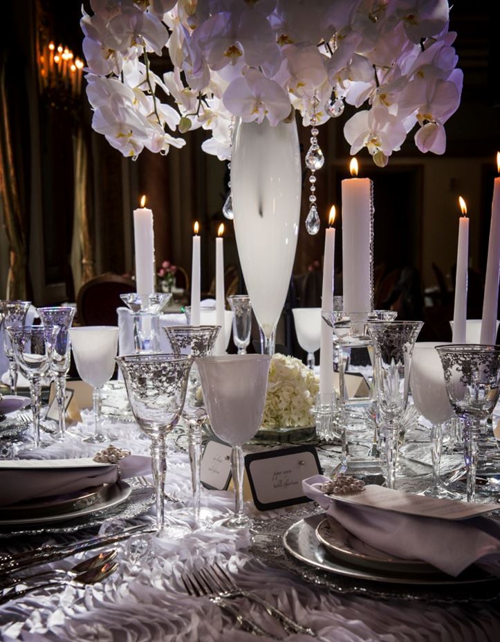 Donnie Brown's ethereal tablescape in the Fall issue of Brides of North Texas took our breath away like a blast of cold wind. This editorial shoot took place in the French Room at The Adolpus - a venue unlike any other in Downtown Dallas with a rich history of tradition and royal customer care. Using a palette of whites, silvers, and greys, Donnie reflects a lush, textured winter landscape starting with a Silver Radiance Brushed Glass Chargers layered with a mix of metallic patterns and pops of white. Fit for any winter wonderland or fairy tale wedding, this heavenly tabletop (and gorgeous model bride) look ready to take breaths away themselves. For more info on this shoot, check out Donnie Brown's blog here.