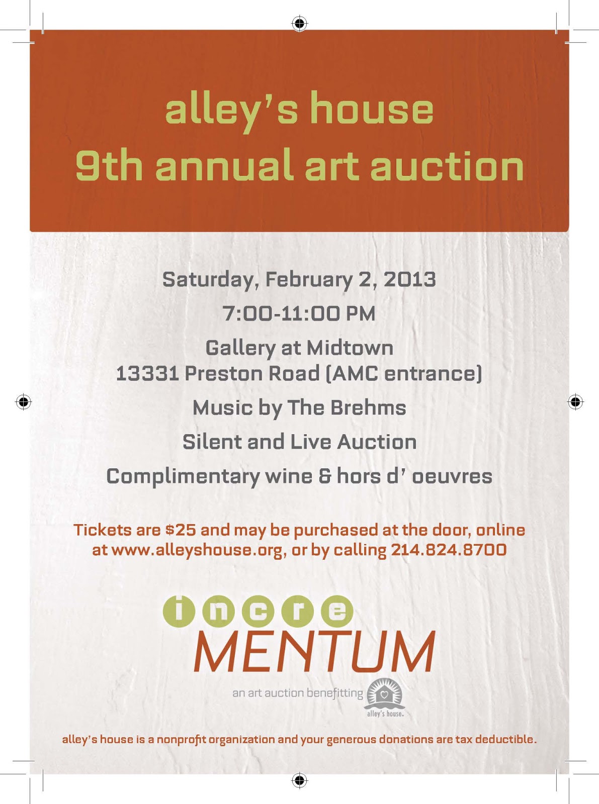 There is only one thing better than buying art, and that's buying art for a great cause. Fortunately for you, tomorrow you can do just that by heading down to the Gallery at Midtown. Proceeds will benefit alley's house, which you know as a nonprofit near and dear to our hearts. alley's house empowers teen mothers and their children by supporting them as they achieve financial and education independence. The live auction this year will feature many Texas artists, including two live art paintings. For me details on the event and featured artists, please visit alley's house blog here.
