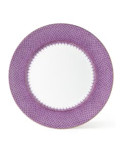 Charger: The Mottahedeh Lace Plum Charger features the iconic lace pattern rendered in a rich plum hue, accented with the shimmering hand-painted bands of 22K gold.