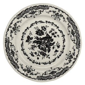 Hero Pieces: Heritage Collection in Black, Ginori Collection in Bario, Duchess Goblets in White and 24K Gold, and mixed black rattan chairs.